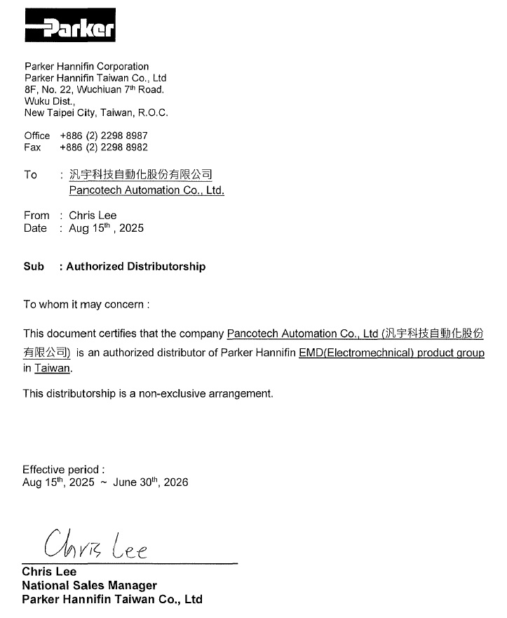 • Parker官方授權證明
